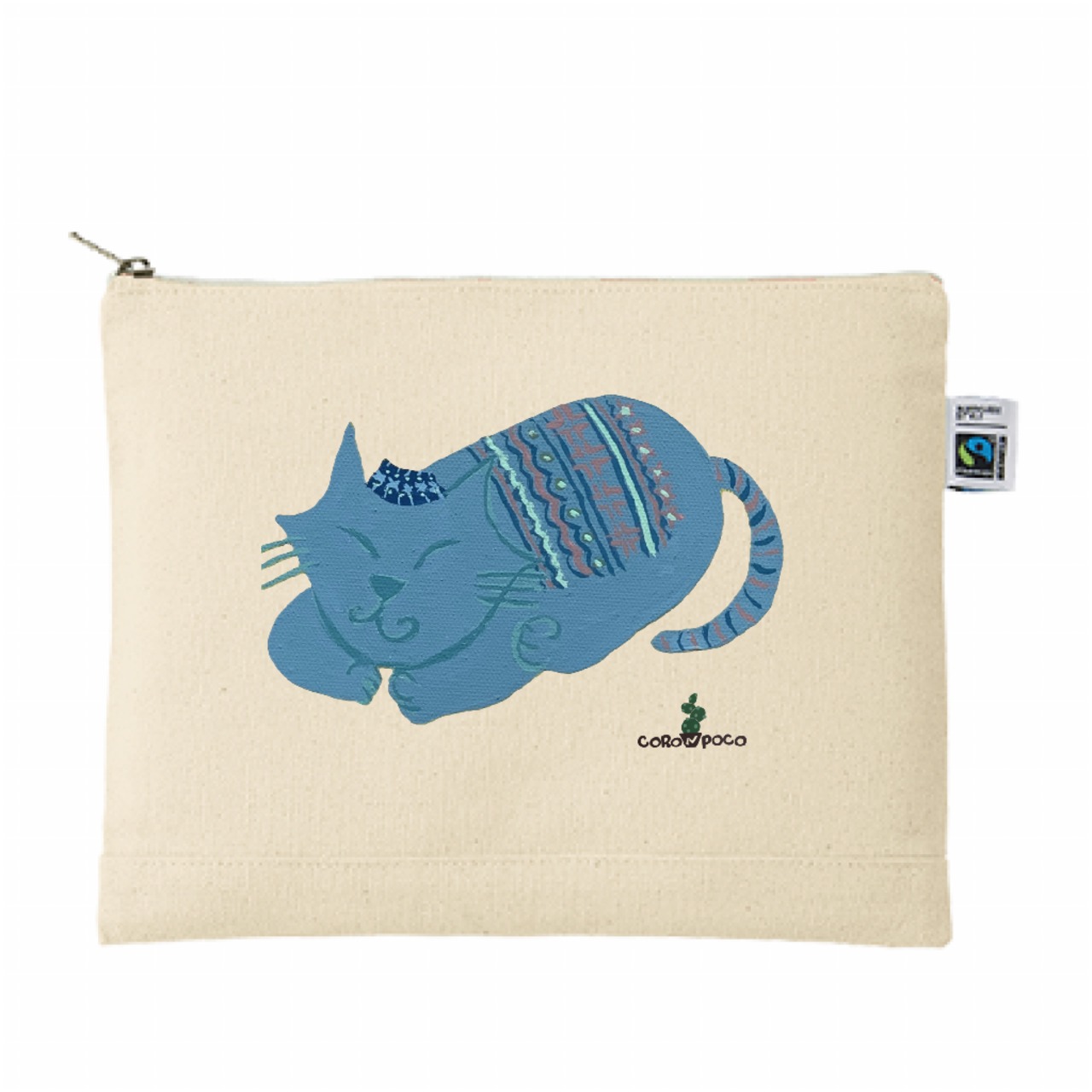 「エキゾチックな猫」ブルー猫 フェアトレードコットンキャンパスフラットポーチL