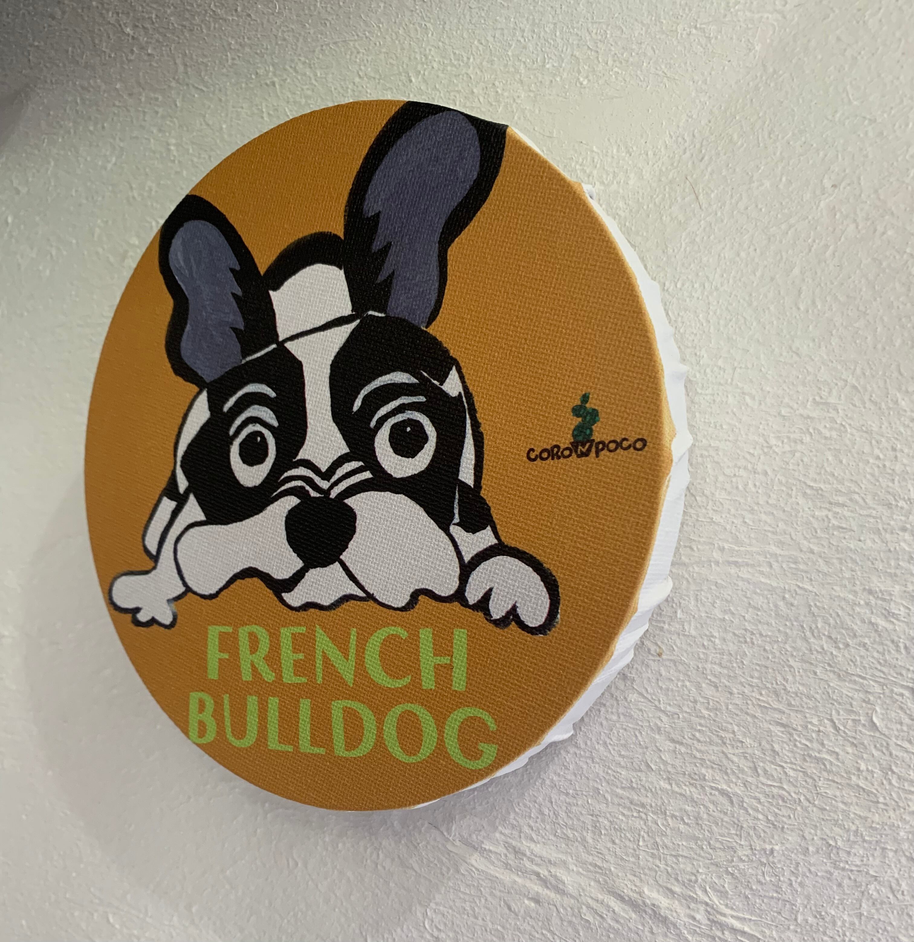 「フレンチブルドッグ 伏せポーズ」丸型キャンパス