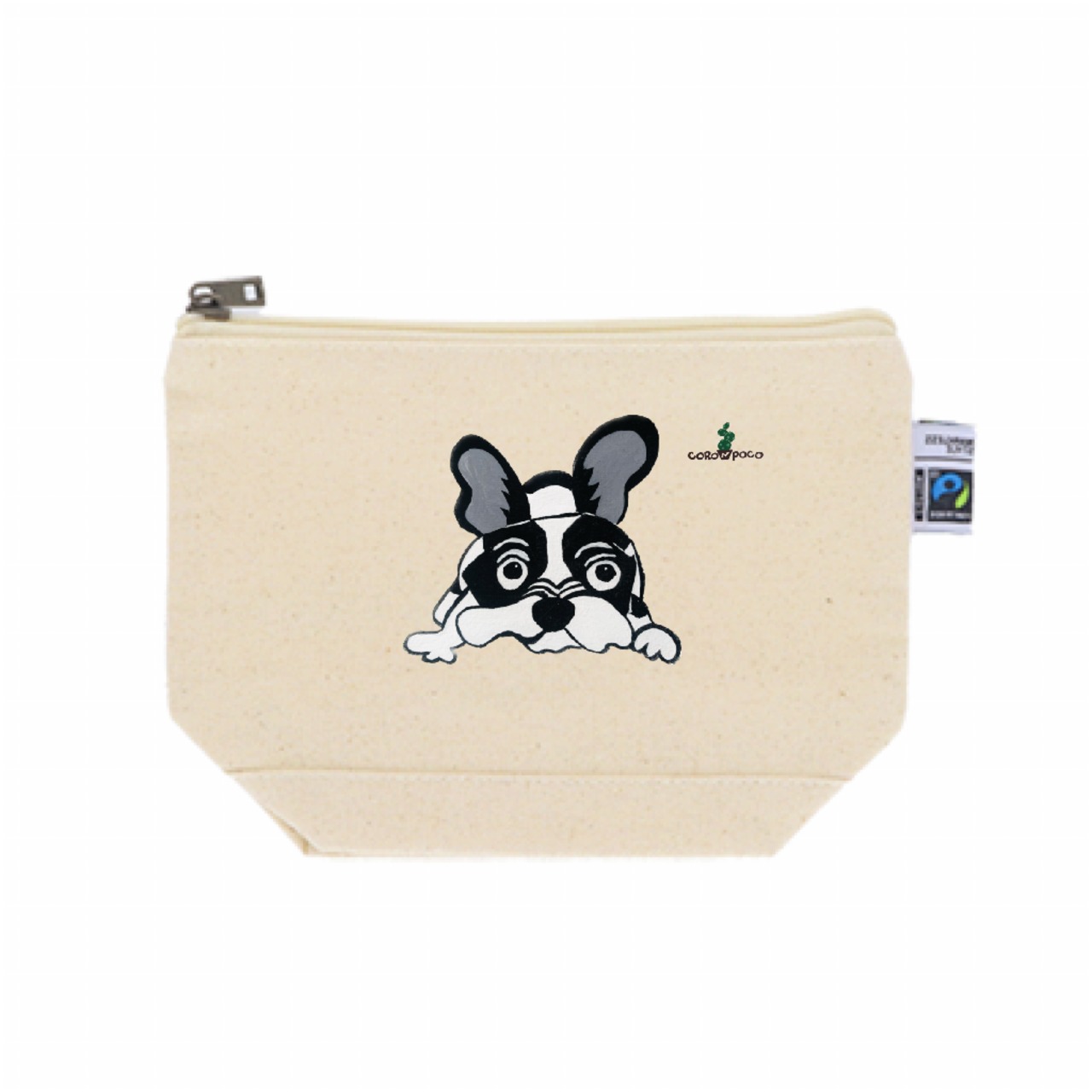 「フレンチブルドッグ 伏せポーズ」フェアトレードコットンキャンパスデイリーポーチ